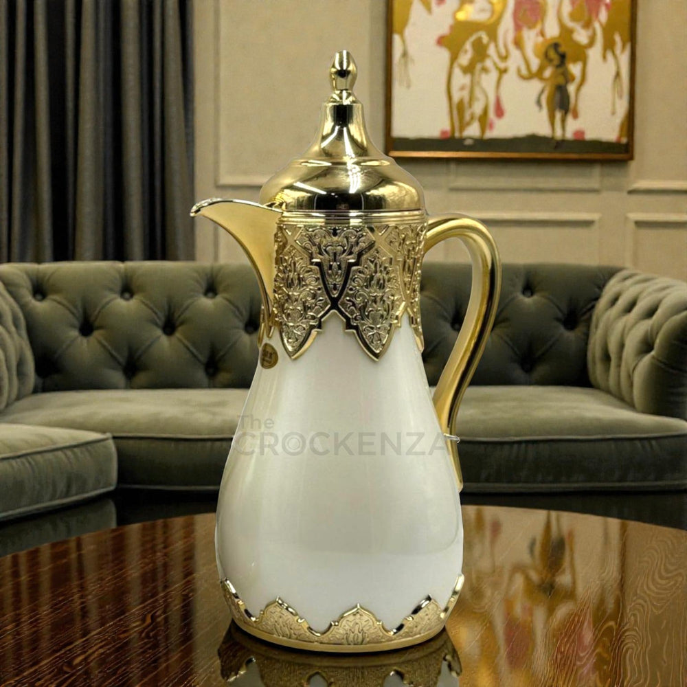 Ornate Gold Detailing: Features intricate, electroplated gold accents on the handle, spout, lid, and base, providing a luxurious, regal finish.